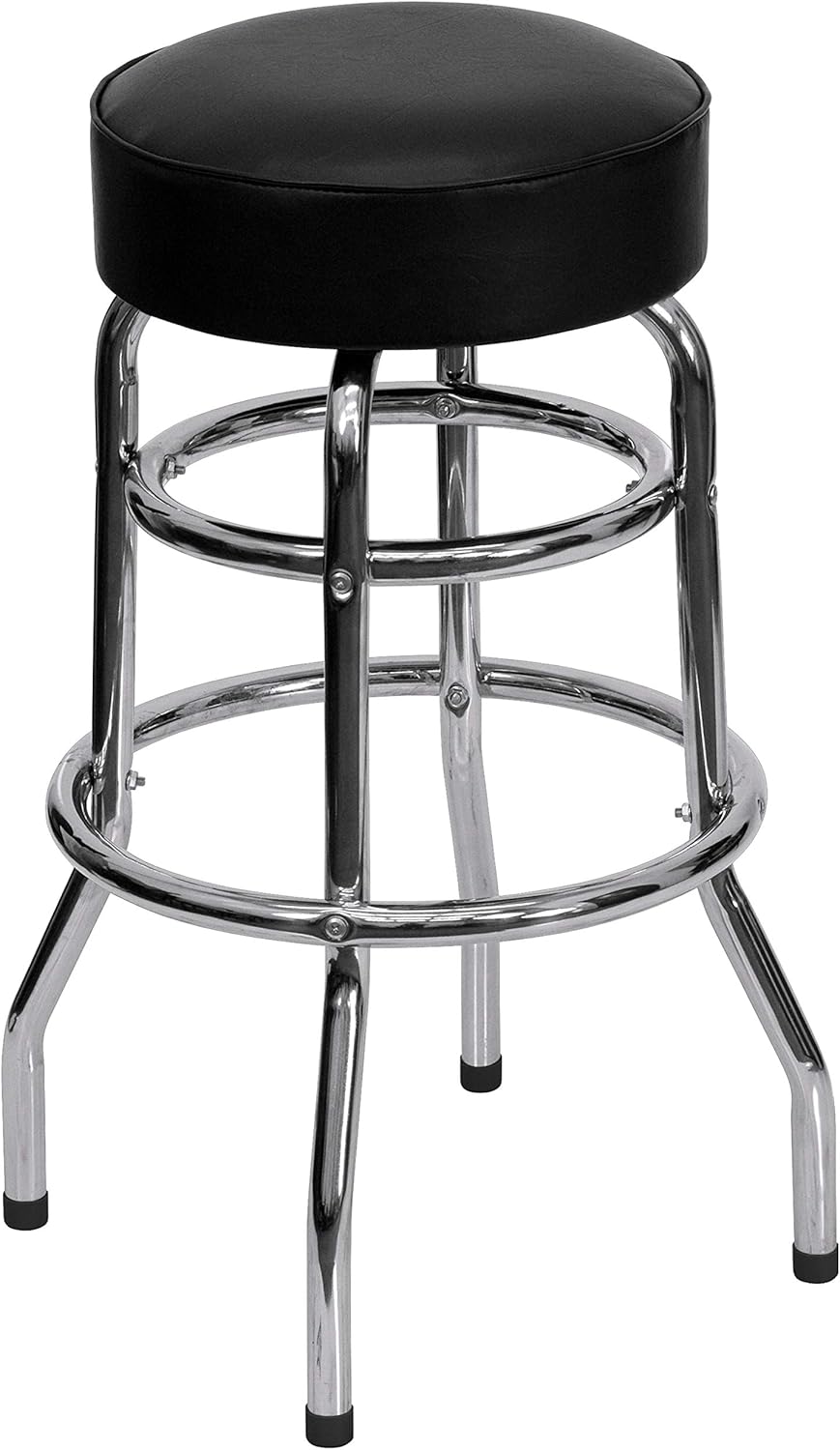 Amazon Com Flash Furniture Double Ring Chrome Barstool With Black Seat Home Kitchen