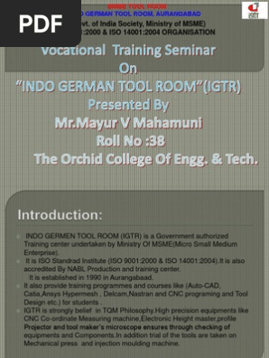 Workshop indo german tool room aurangabad. Indo german tool room igtr aurangabad a govt. Press here for indo german tool room aurangabad official website link. Prod product design at aurangabad only 3. List of empaneled agencies for igtr aurangabad for sfurti scheme inquiry link for pg pd certificate courses and online short term courses registration link for pg pd certificate courses and online short term courses.